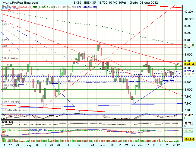 Nuestro selectivo del mercado continuo, Ibex, mantiene un comportamiento relativamente inferior al resto de índices europeos y el selectivo de la bolsa de Madrid, cerraba con perdidas del 1,72%, en los 8.581 puntos, situándose nuevamente por debajo de la directriz bajista. Con la confirmación hoy de la vela de hombre colgado que nos dejo ayer, … Leer
