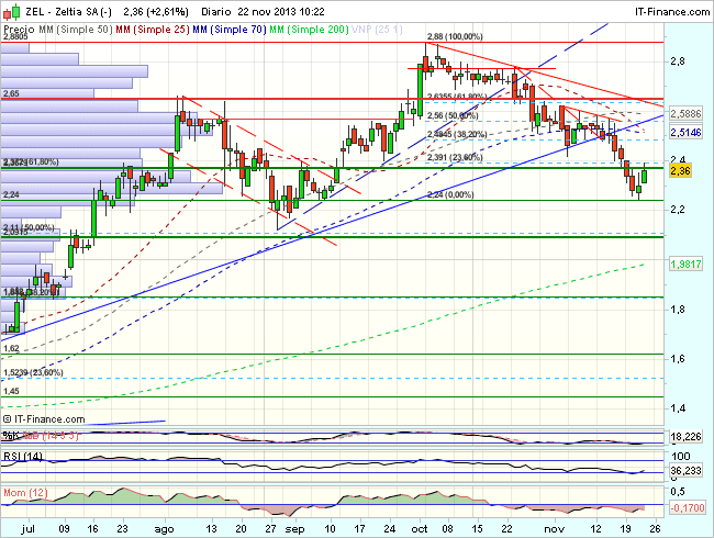 En consecuencia, la tendencia de Zeltia en el corto plazo, es  bajista, aunque en proceso de rebote, con primeros objetivos en los 2,37 – 2,57 euros.