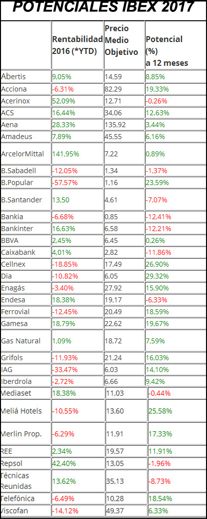 En este contexto,  en 2017 habrá que hacer sitio en la cartera para los bancos. BBVA es una de las siete apuestas para el próximo año. Tras superarar los 6,65 euros, tenemos una gran figura de vuelta con objetivo en los 9 euros.(Ver analisis de BBVA)