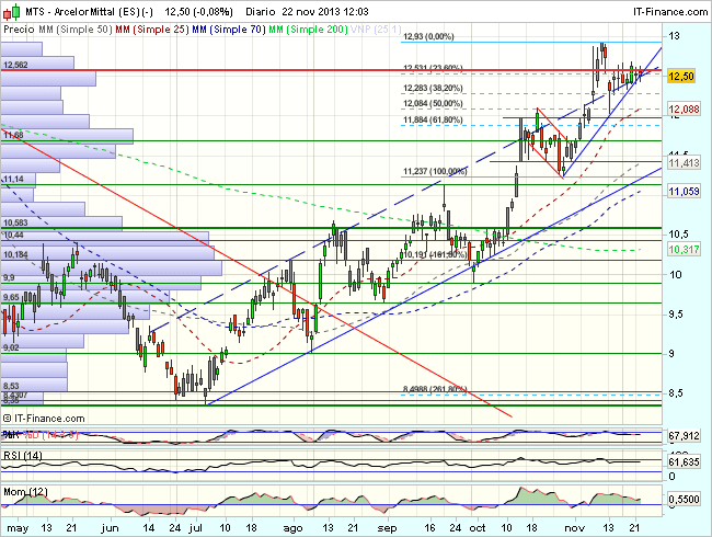 En consecuencia, la tendencia de corto plazo de Arcelor es alcista, con primeros objetivos en los 12,93 euros.