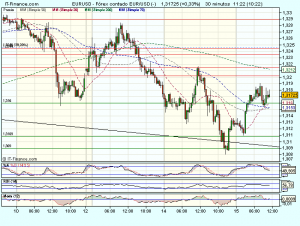 Por lo que se refiere a los indicadores técnicos del Euro – Dólar, los osciladores diarios son mixtos, con estocástico bajista en sobrecompra y RSI girando al alza y superando la zona neutra y se observa debilidad de momentum. Los intradíarios por su parte, también se muestran mixtos mostrando indefinición.