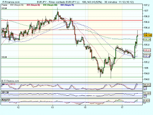 El cruce EUR/JPY, se encuentra hoy alcista continuando con el escenario de recuperación, tras rebotar en la media de 200 sesiones. Cotiza con beneficios del 0,56% en los 106,189 yenes.