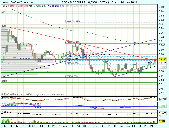 En consecuencia, la tendencia del Banco Popular en el corto plazo es alcista, con primeros objetivos en los 0,685 – 0,71 euros.