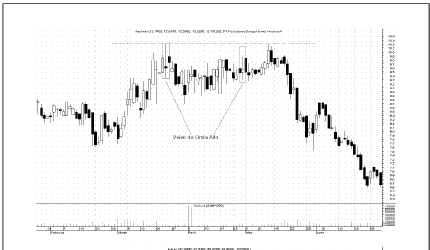Se forma esta pauta cuando los precios cotizan durante el día en un rango muy amplio tanto a la baja como al alza con respecto a la apertura del día. Esto significa que el resultado final no es diferente del inicial (apertura) a pesar del entusiasmo y la volatilidad que ha habido durante la sesión. La pauta implica una pérdida de sentido de la dirección y de ahí la gran indecisión del