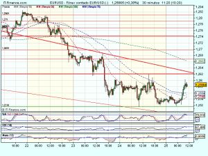 El cruce EUR/USD se mueve al alza en la sesión de hoy, rebotando desde el entorno de los 1,25 dólares. Cotiza con beneficios del 0,44% en los 1,2585 dólares.