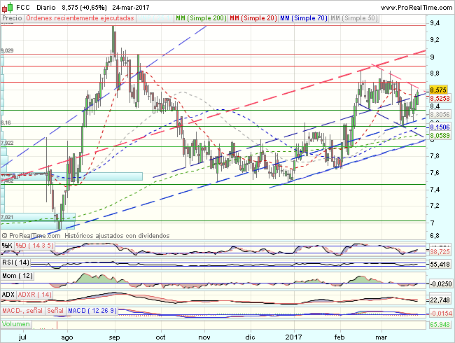 En consecuencia, la tendencia de FCC es alcista, con primeros objetivos en los 8,7 – 8,9 euros.