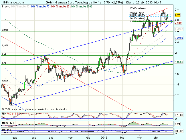 En consecuencia, la tendencia de Gamesa en el corto plazo es alcista, con primeros objetivos en los 2,8 – 2,9 euros.