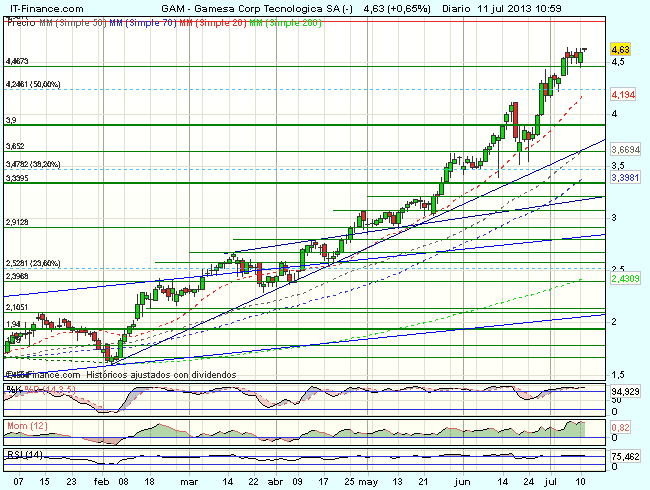 En consecuencia, la tendencia de Gamesa en el corto plazo es alcista, con primeros objetivos en los 4,7 – 5 euros.