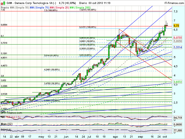 En consecuencia, la tendencia de Gamesa en el corto plazo es alcista, con primeros objetivos en los 7 – 7,5 euros.