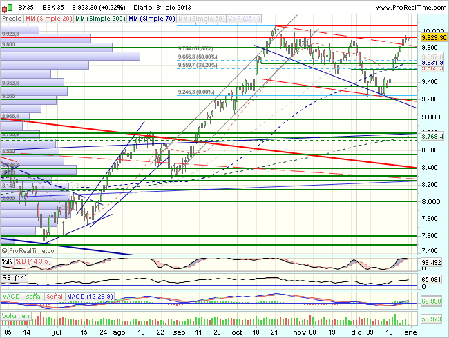 LONE__El Ibex cerraba la ultima sesión de 2013, con una revalorización del 21,4%, rompiendo así una racha de tres años consecutivos de caídas y con la vista puesta en los máximos, que con toda probabilidad y la ayuda del efecto enero, veremos batir en próximas sesiones