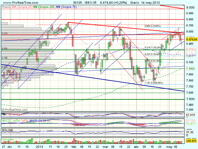 En consecuencia, la tendencia del Ibex 35 en el corto plazo es alcista, aunque en proceso de consolidación con objetivos en los 8.600 – 8.670 puntos.