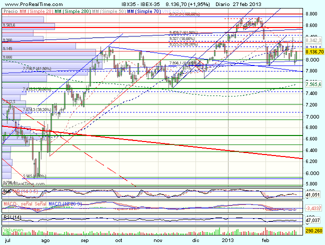 Por encima no podemos confiar en la continuidad de las alzas, mientras el Ibex se mantenga bajo los 8.400 puntos.