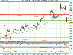 El Ibex35 ha iniciado la sesión al alza, pero rápidamente se ha desinflado hasta pasar a negativo, en una sesión que se parece bastante a la del rescate de nuestros bancos, hay aun muchas cosas que resolver en la zona euro y se impone la prudencia.