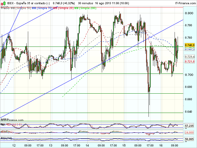 Por encima de los 8.800 puntos, el aspecto técnico del Ibex mejoraría y podríamos ver continuidad en las alzas, con objetivos en los 8.950 – 9.000 puntos.