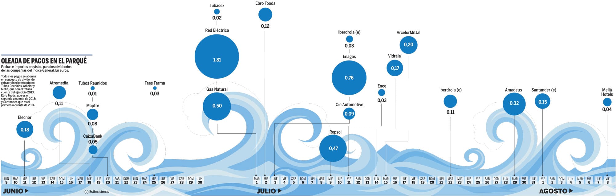 Llega la temporada de verano y con ella tiempo de pagos al accionista. Estos mesess suelen ser los elegidos por muchas de las cotizadas españolas para repartir los dividendos complementarios con cargo al ejercicio anterior.