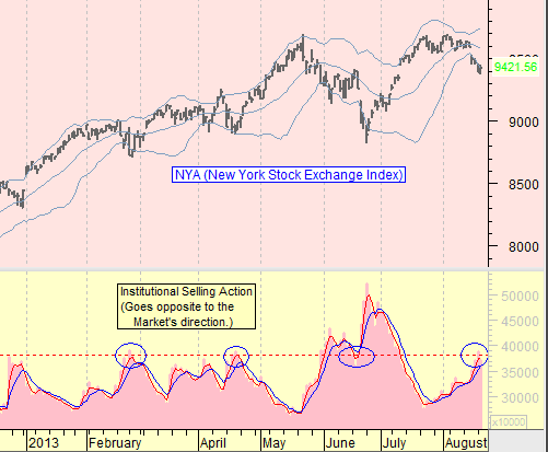En realidad, se trata de un gráfico muy simple. La relación de Venta institucional es inversa a los movimientos del mercado. En otras palabras, si la venta institucional entra en una tendencia alcista, a continuación, la toma de beneficios hará caer al mercado.