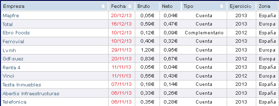 Otro ejemplo que seguiría esta tendencia es el anuncio efectuado esta semana por Mapfre. La aseguradora comunicó un aumento del 25% en el dividendo a cuenta de los resultados de 2013, hasta los 0,05 euros por acción.