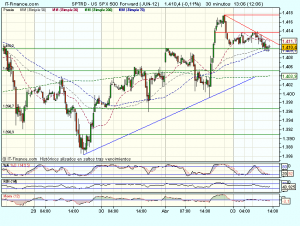 En consecuencia, para la sesión de hoy, el sesgo del S&P 500 es bajista, aunque mientras se mantenga sobre los 1.405 puntos, es probable la continuidad en la recuperación, con objetivos en los 1.418 – 1.420 puntos.