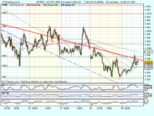 En consecuencia, para la sesión de hoy, el sesgo del S&P 500 es alcista, aunque mientras se mantenga bajo los 1.345 puntos, es probable la continuidad en la corrección, con objetivos en los 1.333 – 1.325 puntos.