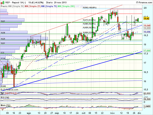 En consecuencia, la tendencia de Repsol en el corto plazo es alcista, con primeros objetivos en los 19,94 – 20,5  euros.