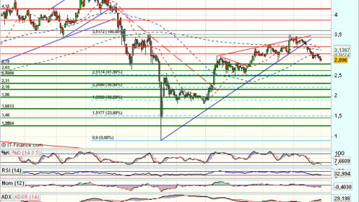 En el largo plazo, Abengoa, tras encontrar obstáculos en los 4,73 euros, inicia un fuerte impulso bajista, hasta soportes de largo plazo en los 1,25 euros.