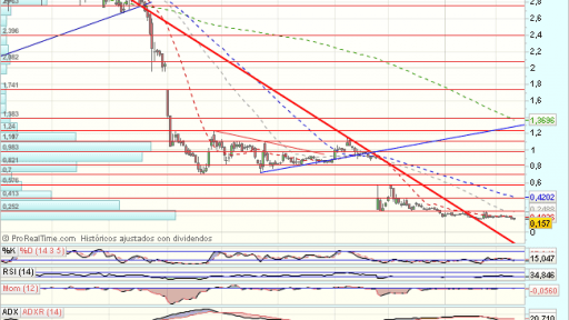 En el largo plazo, Abengoa, tras encontrar obstáculos en los 4,73 euros, inicia un fuerte impulso bajista, hasta soportes de largo plazo en los 1,25 euros.