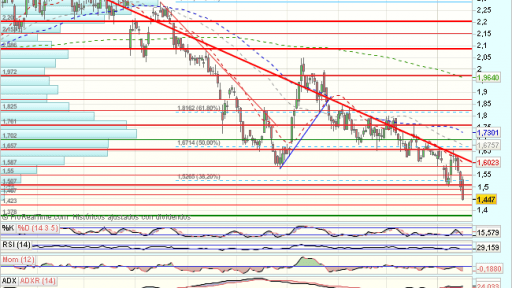 En el medio plazo, Sabadell corrige hasta soportes en 1,96, que dan paso a un impulso alcista que encuentra obstaculos en 2,5 euros