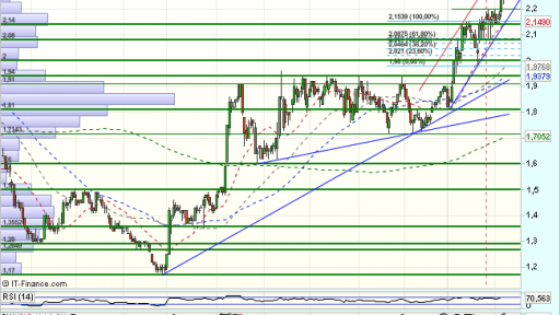 En las ultimas sesiones, encuentra obstaculos ante los 2,15, que provocan un throwback al 50%de retroceso del impulso bajista previo, desde donde rebota, superando maximos previos, con primeros objetivos en los……….Sigue en https://www.mercadosencontinuo.es/mapa