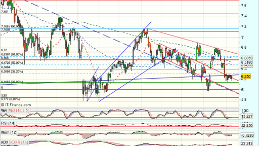 En el medio plazo, Santander se apoya en la media de 200 sesiones para un nuevo impulso alcista acelerado hasta los 8 euros, que fuerzan una consolidacion.