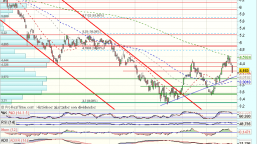 En el largo plazo, el Banco de Santander, tras encontrar apoyos en el soporte de los 3,5 euros, inicia un nuevo impulso alcista, que se agota en los 8,27 euros.