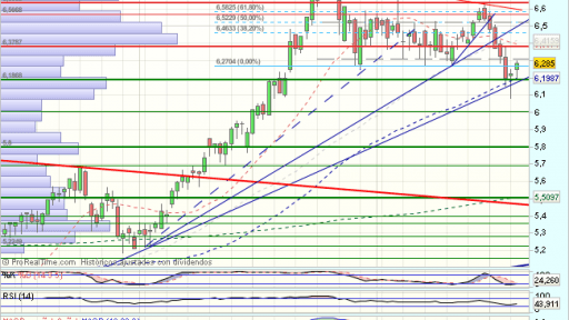 En el corto plazo, el Banco de Santander, encuentra obstáculos en los 6,775 euros, que fuerzan una consolidación lateral. Perfora el techo del rango, definiéndolo como de continuidad bajista y la directriz bajista, hasta encontrar apoyos en la directriz alcista de medio plazo, dando lugar a una formación de martillo con implicaciones alcistas, confirmada en la ultima sesion con un nuevo impulso alcista y con primeros objetivos en los……….Sigue https://www.mercadosencontinuo.es/banco-de-santander-analisis-tecnico-60.html