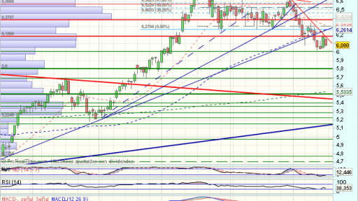 En el medio – largo plazo, el Banco de Santander, tras encontrar apoyos en el soporte de los 4,5 euros, inicia un nuevo impulso alcista, que se agota en los 5,69 euros.