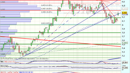 En el medio – largo plazo, el Banco de Santander, tras encontrar apoyos en el soporte de los 4,5 euros, inicia un nuevo impulso alcista, que se agota en los 5,69 euros.
