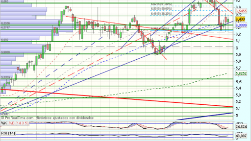En el corto plazo, el Banco de Santander, encuentra obstáculos en los 6,85, euros, que fuerzan una consolidacion , hasta los 6,25, desde donde rebota, con primeros objetivos en los……….Sigue