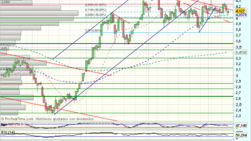 En el corto plazo, encuentra obstáculos en los 4,5 euros, que fuerzan una consolidación, hasta los 3,75, desde donde reacciona en un rebote , que se agota ante los 4,25 euros, forzando una consolidacion lateral con techo en los……….Sigue https://www.mercadosencontinuo.es/banco-popular-analisis-tecnico-47