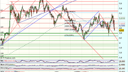 En las ultimas sesiones, encuentra apoyos en soportes de 4,1, para un rebote hasta los 5,22 que fuerzan un trhrowback a soportes en 4,4, desde donde rebota en un pullback a resistencias en 5,2, que fuerzan una consolidación en forma de doble techo, con primeros objetivos en los……….Sigue en https://www.mercadosencontinuo.es/mapa