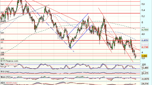 En el medio plazo, rompe fuertemente al alza, definiendo el lateral como de continuidad alcista, y que supera el 100% de todo el impulso bajista previo desde 2012, hasta los 5,95 euros, que fuerzan una consolidación.