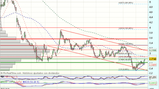 La tendencia del Banco Popular en el largo plazo es muy bajista, si bien, en el corto plazo, tras encontrar apoyos en el soporte de los 2,35 euros, inicia un movimiento alcista, que en la sesión de hoy supera resistencias y el 50% de recuperación de la caída previa desde los 3,32 euros, abriendo nuevos objetivos en los……….Sigue en https://www.mercadosencontinuo.es/banco-popular-analisis-tecnico-36.html