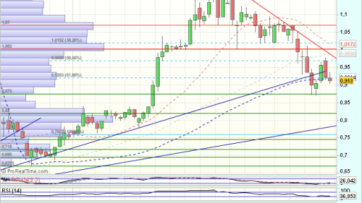 En las ultimas sesiones, encuentra obstáculos en los 1,18 euros, que fuerzan una consolidación, que perfora el 61,8% de retroceso del impulso alcista previo, hasta encontrar nuevos apoyos en el soporte de los 0,87 euros, desde donde rebota, con primeros objetivos en……….Sigue https://www.mercadosencontinuo.es/bankia-analisis-tecnico-28.html