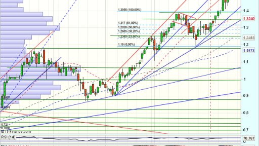 En el medio plazo, se impulsa desde el soporte de los 0,67 euros, acelera tendencia, y supera el 100% de recuperación de todo el impulso bajista previo, anulando la formación de doble techo, hasta encontrar obstáculos en los 1,39 euros, que fuerzan una consolidación hasta los 1,19 euros.