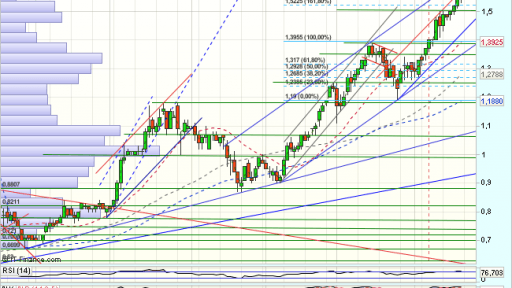 En el medio plazo, se impulsa desde el soporte de los 0,67 euros, acelera tendencia, y supera el 100% de recuperación de todo el impulso bajista previo, anulando la formación de doble techo, hasta encontrar obstáculos en los 1,39 euros, que fuerzan una consolidación hasta los 1,19 euros.