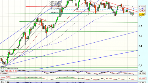 En las últimas sesiones, encuentra apoyos en forma de doble suelo en los 1,43, para un rebote, que encuentra techo en los 1,55 euros, derivando en un rango lateral en fase bajista al suelo del rango, desde donde intenta el rebote, con primeros objetivos en los ……….Sigue en https://www.mercadosencontinuo.es/mapa