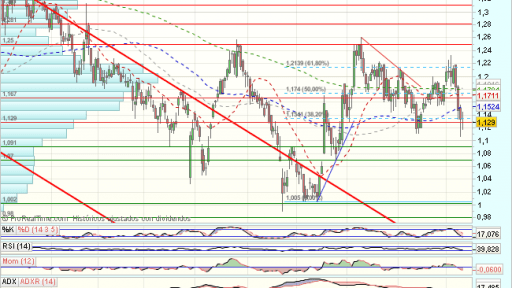 En el medio plazo, Bankia, se impulsa desde el soporte de los 1,068 euros en un pullback a resistencias en 1,35 euros que fuerzan un doble techo, seguido de una consolidación a soportes en 1,00 euros.