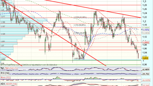 En el medio plazo, Bankia, se impulsa desde el soporte de los 1,068 euros en un pullback a resistencias en 1,35 euros que fuerzan un doble techo, seguido de una consolidación a soportes en 1,00 euros.