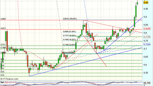 En el corto plazo, se impulsa desde el soporte de los 0,67 euros y supera el 100% de recuperación de todo el impulso bajista previo, anulando la formación de doble techo, con primeros objetivos en……….Sigue en https://www.mercadosencontinuo.es/bankia-analisis-tecnico-25.html