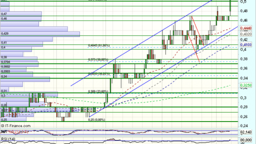 En las últimas sesiones, encuentra obstáculos en la resistencia de los 0,47 euros, que fuerzan una consolidación, hasta los 0,39 euros, desde donde rebota, superando la resistencia relevante de los 0,5 euros y con ello el 100% de recuperación de toda la caída previa desde 2012, abriendo nuevos objetivos en los ……….Sigue https://www.mercadosencontinuo.es/deoleo-analisis-tecnico-4.html