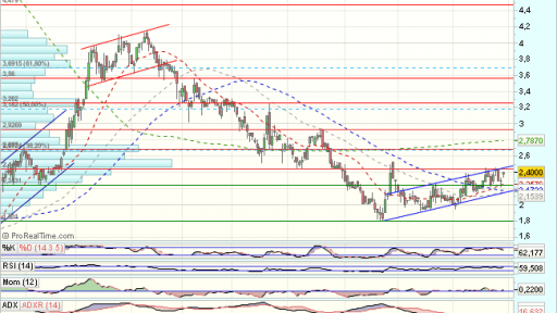 En el medio plazo, eDreams encuentra apoyos en los 1,02 euros, para un pullback a resistencias en 2,24 euros, que fuerzan una consolidación.