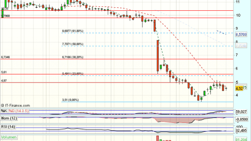 En las últimas sesiones, encuentra apoyos en los 5 euros, desde donde intenta el rebote sin exito, quedando en situacion tecnica de caida libre hasta los 3,5 euros, desde donde rebota, con primeros objetivos en los …….Sigue en https://www.mercadosencontinuo.es/mapa