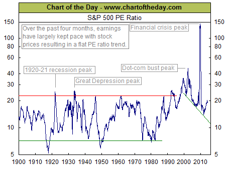 Para respondernos a esa pregunta, vamos a ver como anda el ratio de precios/beneficios (PER) desde 1900 hasta la actualidad y si las bolsas están caras en relación a sus niveles históricos.