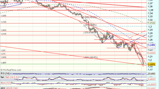 El cruce Euro – dólar, en el largo plazo, tras encontrar techo en los 1,60 dolares, smantiene una tendencia bajista que encuentra apòyos en los 1,20, desde donde rebota.